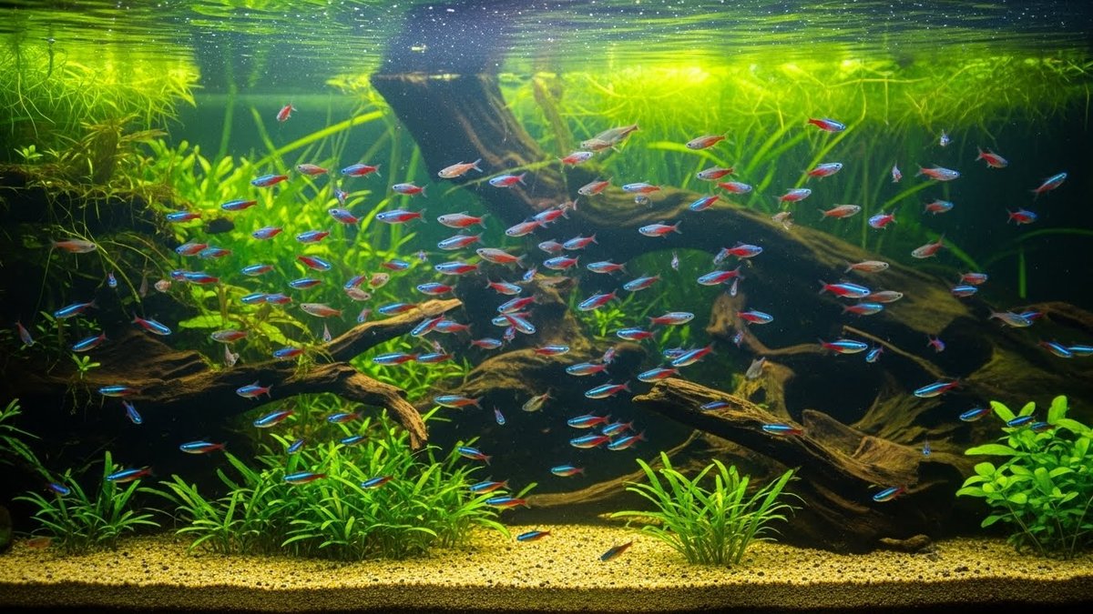 照明の色温度も重要で、やや暖かめの光を使うと赤が映えやすくなります。水草の配置は視線の通り道を作るようにして、群れが泳ぐメインの空間を確保してください。定期的にレイアウトを見直しながら、群れが気持ちよく泳げる空間を維持しましょう。