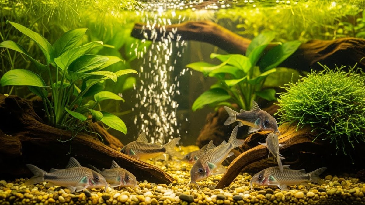 コリドラスは隠れられる場所があると落ち着きます。流木や石、低めのシェルターを配置して隠れ家を増やしましょう。底床は細かめの砂がヒゲを傷めにくく、採餌行動も妨げません。