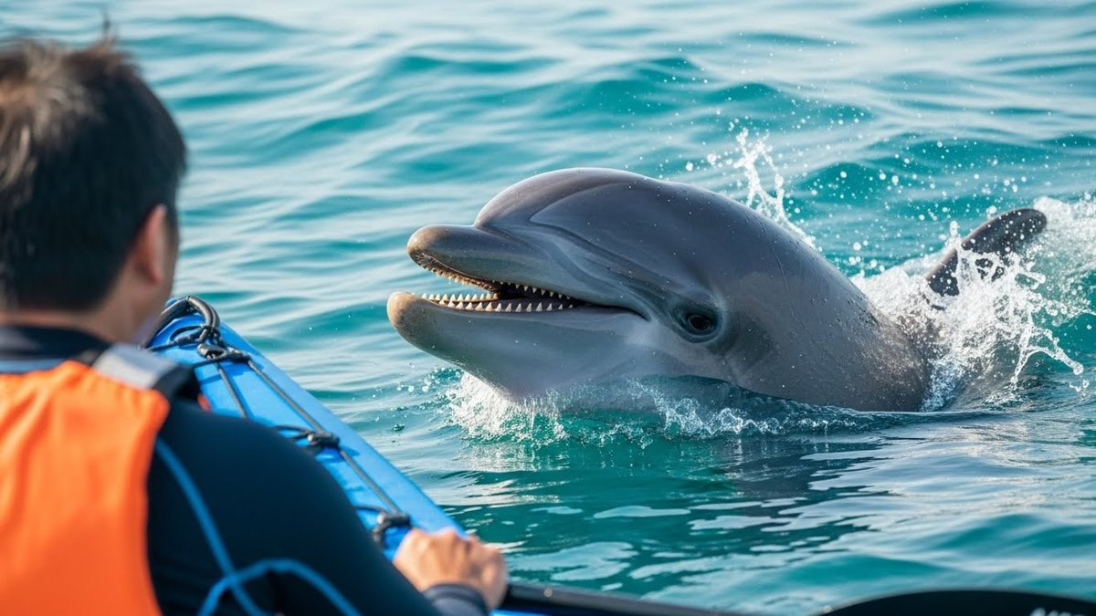 距離を取ることでイルカもストレスを感じにくくなり、予測不能な行動が減ることが多いです。目を合わせ続けたり手を伸ばしたりすると、興味をひいて近づいてくる可能性があるため、静かに様子を見てください。万一接近されたら、急に動かずゆっくり後退することが安全です。