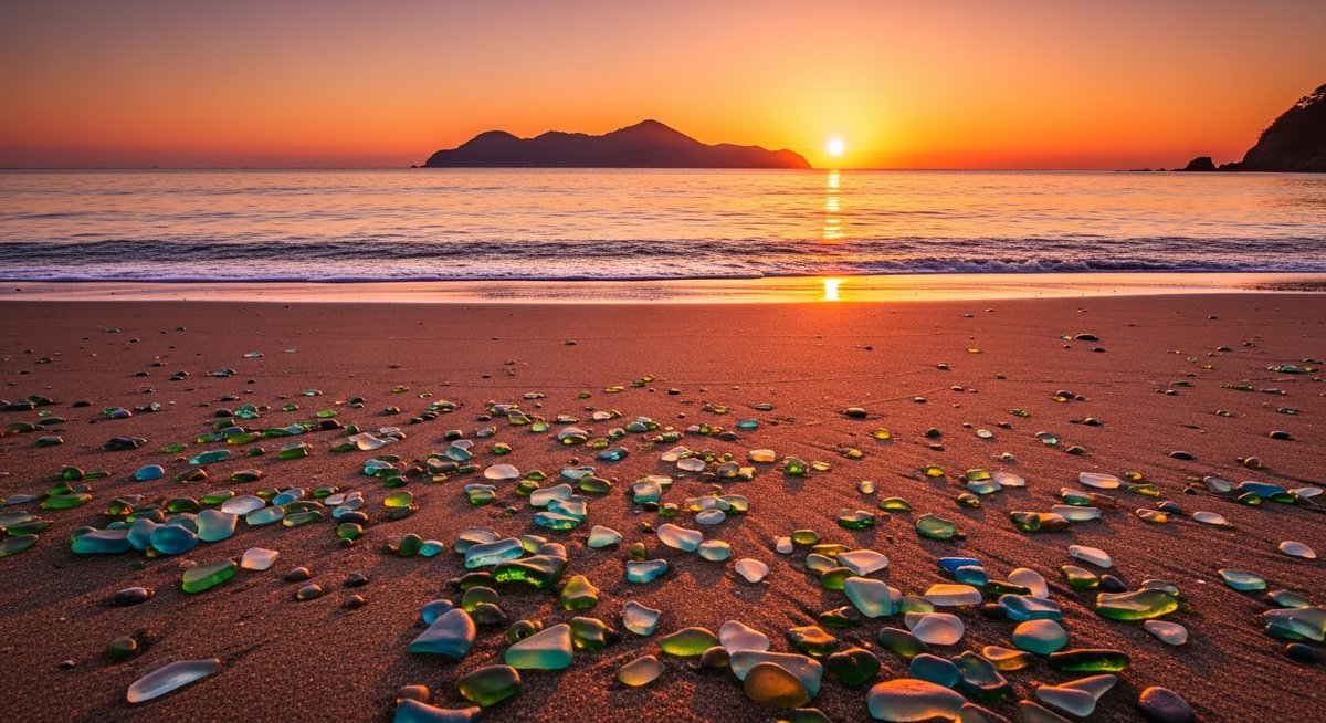 離島は本土と異なる潮流や海況を持つため、他では見られない色や形のシーグラスが見つかることがあります。観光客が少ない浜や人里離れた湾内を狙うと面白い発見があります。