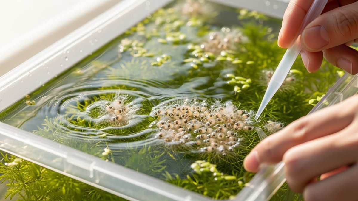産卵床や水草を適度に配置すると卵の付着場所が増え、安全度が上がります。浮草やマット型の産卵床は親魚から卵を守るのに有効です。密に配置しすぎるとカビが広がりやすくなるので、間隔を持たせましょう。