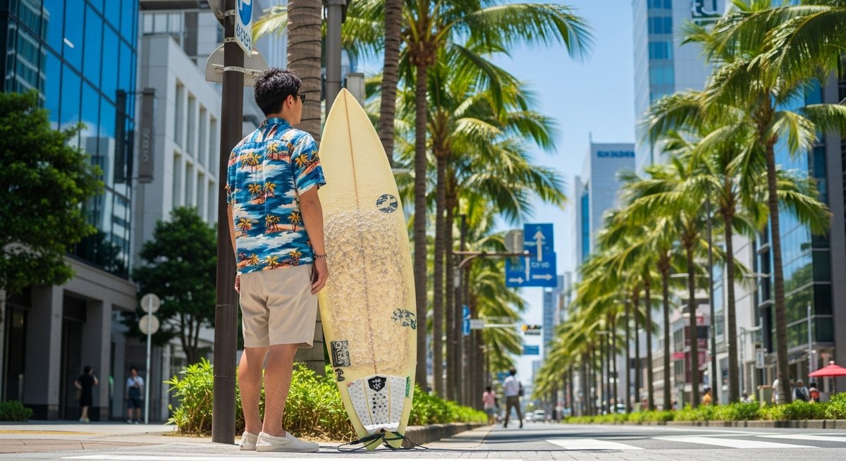 現代ではサーフィン文化がより広く浸透し、町中でもその要素が見られます。SNSの影響でイメージが拡散し、サーフ系ファッションは街着として定着しています。